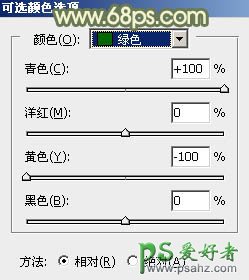 1、打开素材图片,创建可选颜色调整图层,对黄,绿色进行调整,参数及效果如下图。这一步把图片中的黄绿色转为橙黄色。