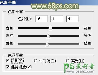 8、创建色彩平衡调整图层,对阴影,高光进行调整,参数设置如图25,26,效果如图27。这一步给图片增加褐色。