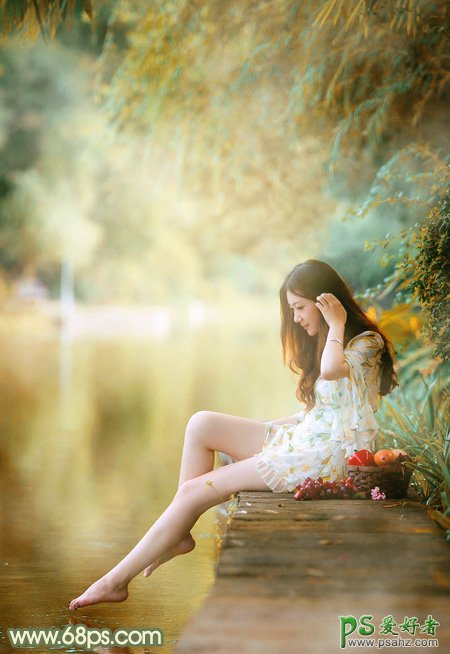 美女图片调色实例,ps调色教程:给清纯的湖景美女图片调出温馨的青黄色效果,暖暖的青色调,我们的素材图片是以绿色调为主,我们的调色师在这样色彩的基础上给它调出淡淡的黄色,黄绿色效果,这样片子看起来就更加的柔和唯美,喜欢的同学们一起调一下吧。