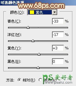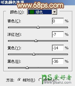 1、打开素材图片,创建可选颜色调整图层,对黄、绿、青进行调整,参数设置如图1 - 3,效果如图4。这一步把图片中的青绿色转为黄绿色。