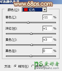 13、创建可选颜色调整图层,对红,白进行调整,参数及效果如下图。这一步给图片增加红色。