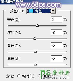 9、创建可选颜色调整图层,对红、青、白、中性色进行调整,参数设置如图18 - 21,效果如图22。这一步微调人物肤色及高光颜色。