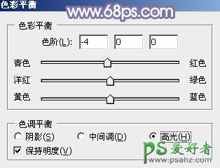 11、创建色彩平衡调整图层,对阴影,高光进行调整,参数及效果如下图。这一步给图片增加淡青色。