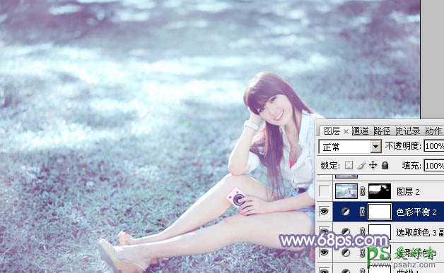 Photoshop给街拍果子mm外景照片调出清新的淡蓝色-冷艳色彩