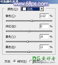 4、创建可选颜色调整图层,对青、蓝、白进行调整,参数设置如图12 - 14,效果如图15。这一步把图片中的青色调淡,并微调高光颜色。