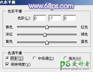 6、创建色彩平衡调整图层,对阴影,高光进行调整,参数及效果如下图。这一步给图片暗部及高光部分增加蓝色。