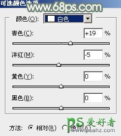 6、创建可选颜色调整图层,对红、黄、白、黑进行调整,参数设置如图16 - 19,效果如图20。这一步给图片增加橙红色。