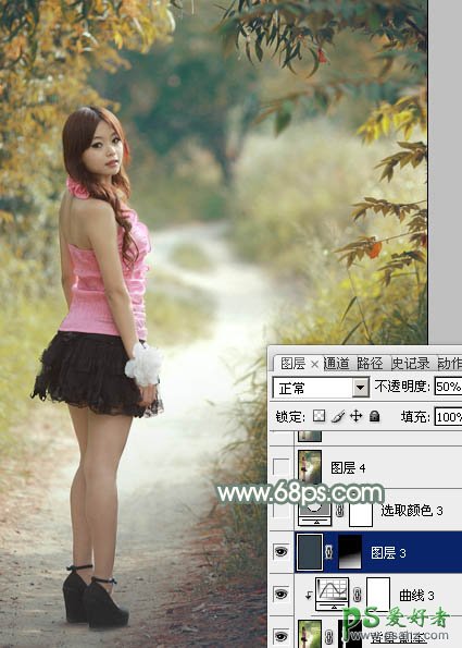 12、新建一个图层,把前景色设置为暗蓝色:#36444D,用透明度较低的画笔把底部涂暗一点,如下图。