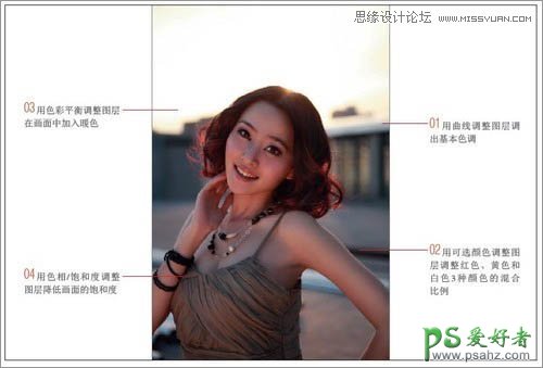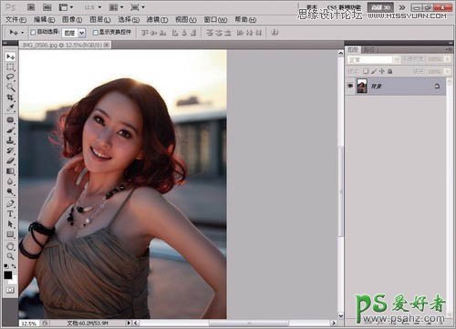PS人物照片美化教程,逆光人像照片后期调色,处理,我们的平面设计师利用photoshop给偏光的美少妇外景摄影照片调亮和润色。作者修复图片的思路非常清晰,如下面的素材,图片有点偏暗及偏色,处理的时候先把整体调亮,调亮就可以发现图片颜色缺失,