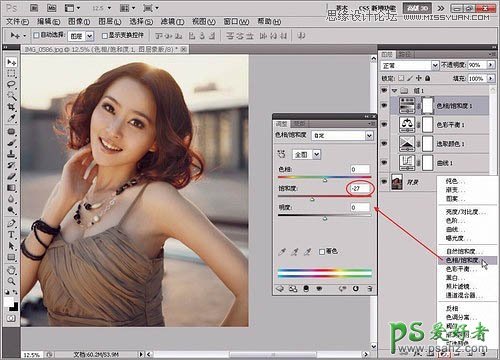 6、其实经过上面的步骤已经完成了曝光的校正,但如果觉得颜色过浓的话,可以适当降低画面的饱和度,这里将“饱和度”降低到-27。