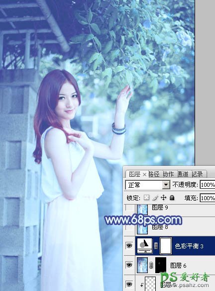PS调色教程:给街景MM艺术照调出冷调青蓝色-柔美的冷调色彩