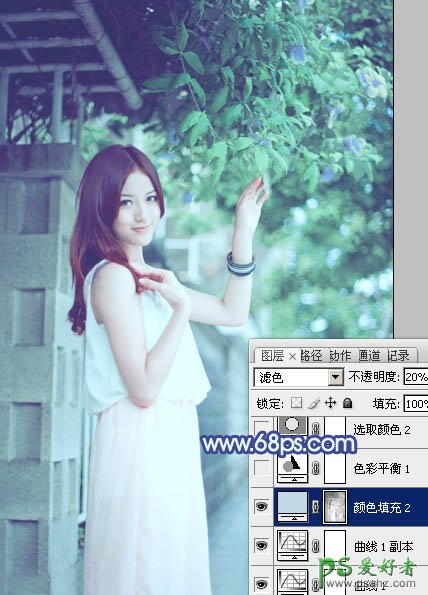 5、按Ctrl + Alt + 2 调出高光选区,创建纯色调整图层,颜色设置为淡蓝色:#C3DAE6,确定后把混合模式改为“滤色”,不透明度改为:20%。效果如下图。