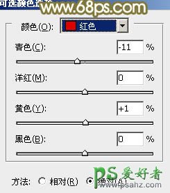 4、创建可选颜色调整图层,对红、黄、中性、黑进行调整,参数设置如图13 - 16,效果如图17。这一步同样给图片增加橙黄色。