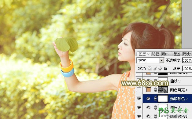 PS黄桔色性感美女调色,给绿树边的美女调出唯美的黄桔色