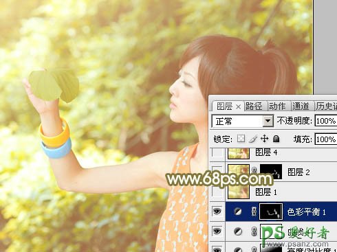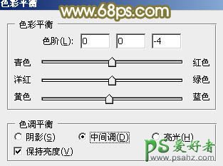 10、创建色彩平衡调整调整图层,对中间调及高光进行调整,参数设置如图28,29,确定后把蒙版填充黑色,用白色画笔把人物肤色部分擦出来,效果如图30。这一步微调人物肤色。