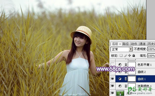 利用photoshop软件给绿色芦苇地里的可爱女孩儿调出秋景效果