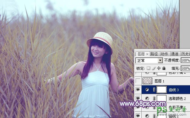 利用photoshop软件给绿色芦苇地里的可爱女孩儿调出秋景效果
