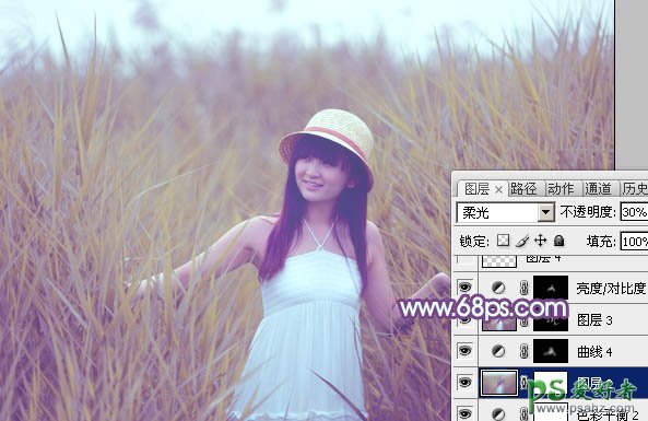 9、新建一个图层,按Ctrl + Alt + Shift + E 盖印图层,简单给人物磨一下皮,把脸部颜色稍微调亮一点,再把整体柔化处理,效果如下图。