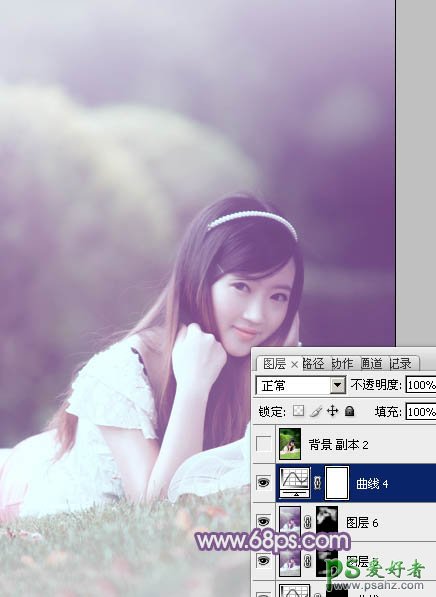 14、新建一个图层,盖印图层,简单给人物磨一下皮,再用模糊工具把背景需要模糊的部分模糊处理,效果如下图。