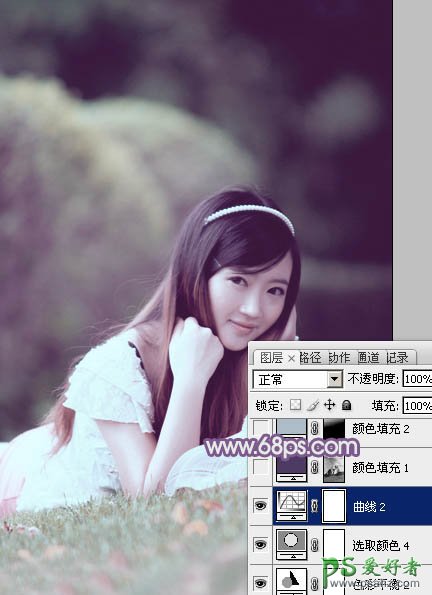 PS中性色美女图片调色:给草地上的唯美女孩调出中性紫色