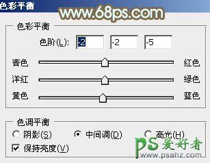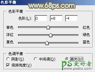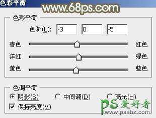 6、创建色彩平衡调整图层,对阴影、中间调、高光进行调整,参数设置如图21 - 23,效果如图24。这一步给图片增加橙黄色。