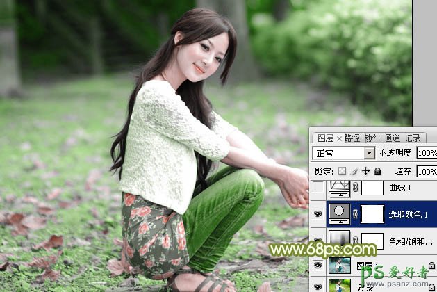 PS调色教程:给野外自拍的少女写真照调出古典淡绿色效果