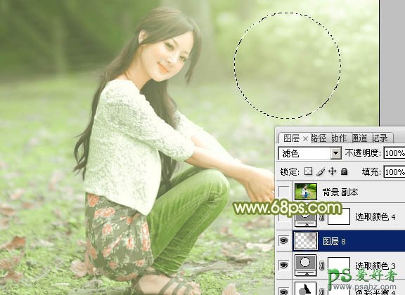 PS调色教程:给野外自拍的少女写真照调出古典淡绿色效果
