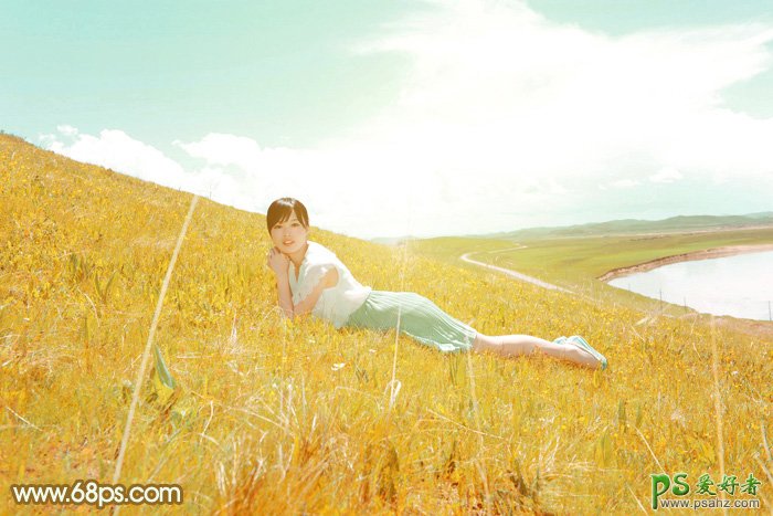 黄色调美女图片给人一种很温暖的感觉,这里我们跟着调色师学习一下PS暖黄色小清新美女调色教程实例:利用photoshop给草坡上自拍的少女调出唯美暖黄色,处理的时候可以把绿色转为较淡的橙黄色,并把人物调亮,再调整一下天空颜色即可。