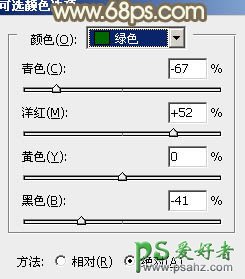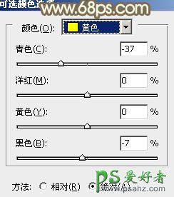 1、打打开素材图片,创建可选颜色调整图层,对黄,绿进行调整,参数设置如图1,2,效果如图3。这一步把背景部分的绿色转为暖色。