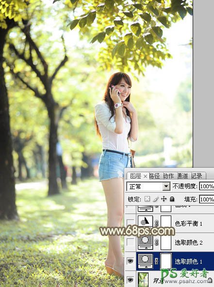 ps调色教程:给夏日户外自拍长腿白领美女写真照调出纯美的色彩