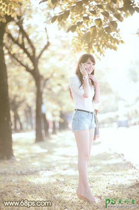 PS美女照片调色教程,ps调色教程:给夏日户外自拍长腿白领美女写真照调出纯美的色彩,美女白领图片后期调色,人像后期,photoshop摄影后期,调色过程:我们的设计师先用调色工具调出主基色,颜色可以稍微艳丽一点,然后降低图片的饱和度转为中性色,后期微调一下颜色即可。