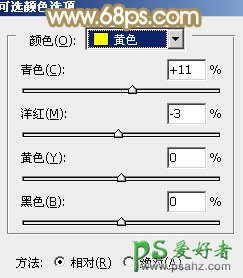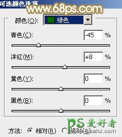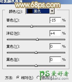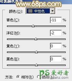 7、创建可选颜色调整图层,对黄、绿、中性、黑进行调整,参数设置如图16 - 19,效果如图20。这一步给图片增加一点橙红色。