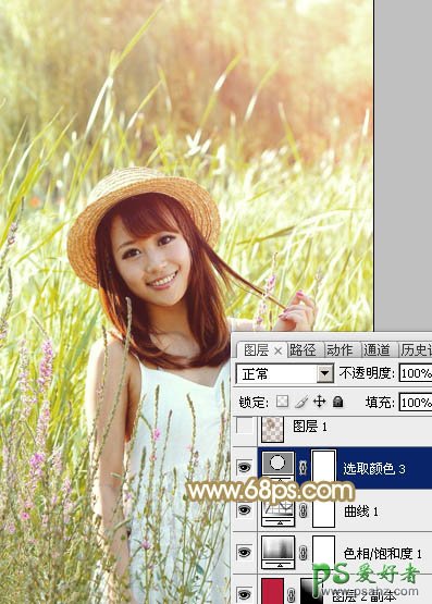 PS调色教程:给芦苇地里青春少女摄影写真照调出青黄色效果