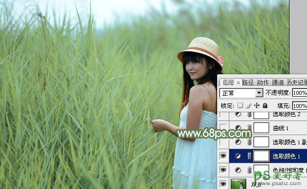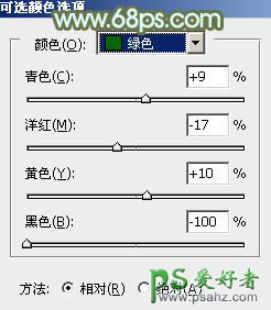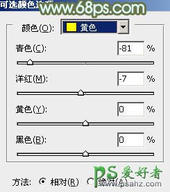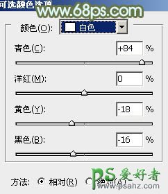 2、创建可选颜色调整图层,对黄、绿、白进行调整,参数设置如图3 - 5,效果如图6。这一步给图片增加橙黄色,并把绿色调淡。