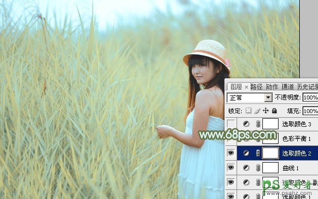 PS调色教程:给芦苇地里青春少女摄影写真照调出青黄色效果