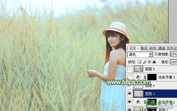 10、按Ctrl + Alt + 2 调出高光选区,按Ctrl + Shift + I 反选,新建一个图层填充红褐色:#834324,混合模式改为“滤色”,不透明度改为:20%,效果如下图。这一步把图片暗部颜色稍微调淡。