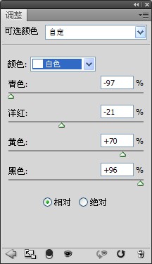 选择,可选颜色,调整白色。