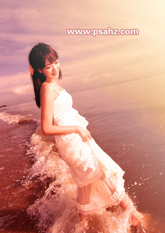 photoshop调出海边日落效果的美女海景婚纱照-婚纱照调色