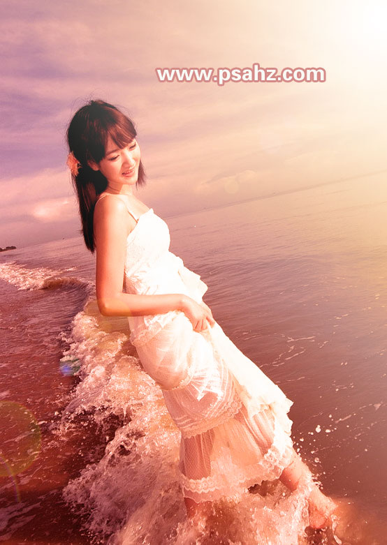 photoshop调出海边日落效果的美女海景婚纱照-婚纱照调色