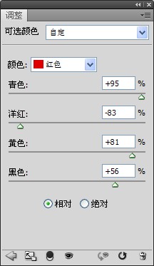 按钮,选择可选颜色,创建可选颜色调整层。具体设置: