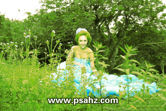 ps调色教程:给外景拍摄的可爱美女婚纱照调出夏日暖暖色彩