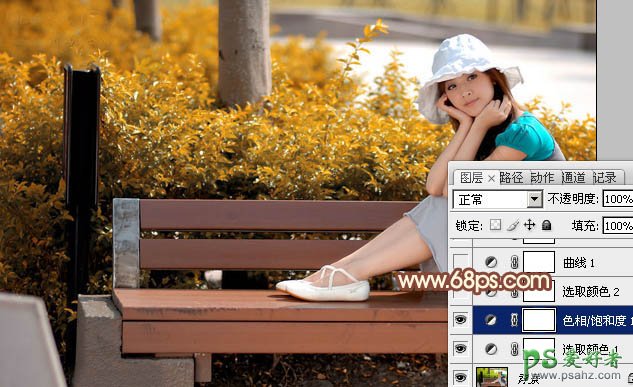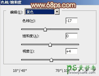 2、创建色相/饱和度调整图层,对黄色进行调整,参数及效果如下图。这一步把图片中的黄色转为红褐色。