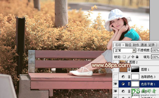 PS调色教程:给公园中可爱的花季少女调出柔美的暖黄色