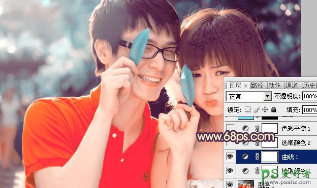 ps调色教程:给一对可爱的小情侣生活写真照调出艳丽的橙红色