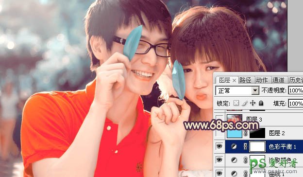9、创建色彩平衡调整图层,对阴影,中间调进行调整,参数及效果如下图。这一步给图片增加橙红色。
