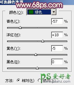 1、打开素材图片,创建可选颜色调整图层,对黄,绿进行调整,参数设置如图1,2,效果如图3。这一步给图片增加橙黄色。