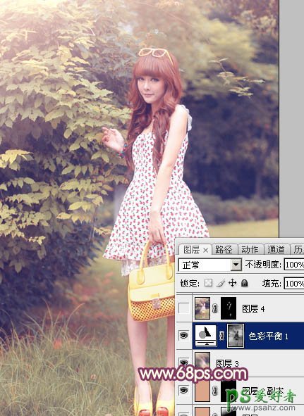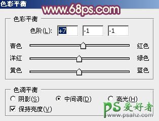 11、创建色彩平衡调整图层,对阴影、中间调、高光进行调整,参数设置如图29 - 31,效果如图32。这一步微调图片暗部及高光部分的颜色。