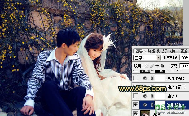 PS调色教程:给淡雅的情侣婚片调出黄昏色彩