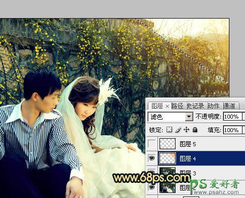 8、新建一个图层混合模式改为“滤色”,把前景颜色设置为橙黄色:#FA9719,用画笔把右上角部分涂上高光,效果如下图。