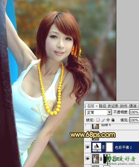 photoshop调出甜美的青黄色性感MM公园生活写真图片